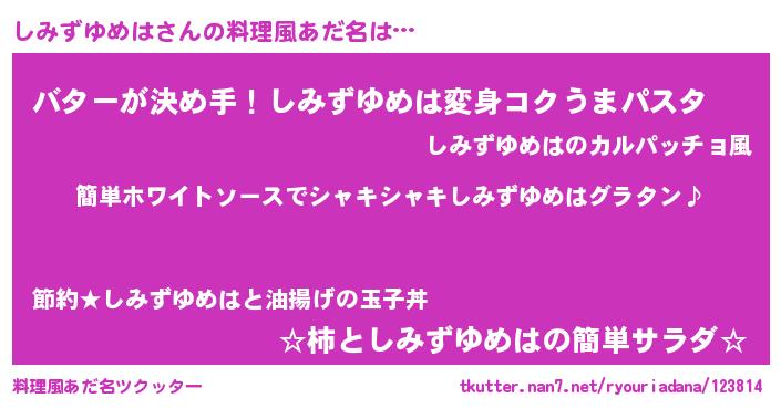 | 意味不明あだ名 | 『とにかく怪しいしみずゆめは』 |