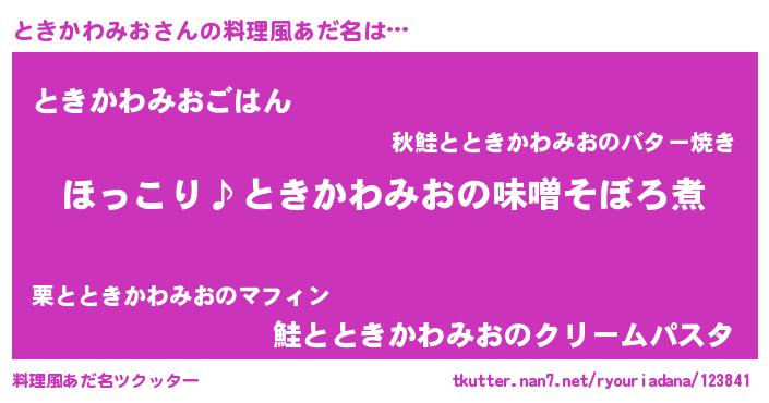 | ヘコむあだ名 | 『ときにー』『ときかわみお(苦笑)』 |