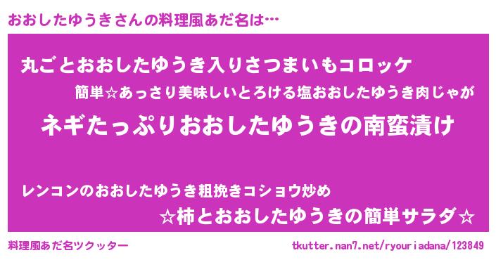 | ヒーロー風カッコイイあだ名 | 『スーパーオオシタユウキ』 |