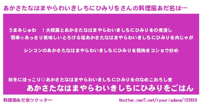 | 女子向けラノベタイトル風あだ名 | 『あかさたなはまやらわいきしちにひみりをなんてお断りですっ。』 |