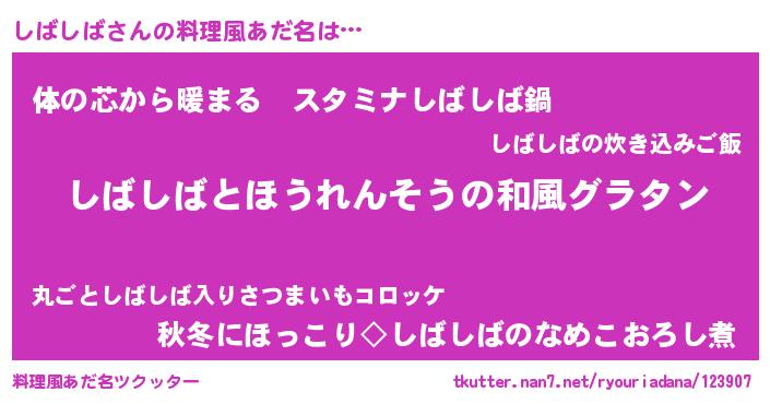| 2回繰り返すあだ名 | 『わしゃわしゃ』『ししばば』 |