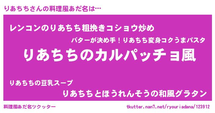 | 女子向けラノベタイトル風あだ名 | 『りあちちが死なない童話 林檎のりあちちの診療簿』 |