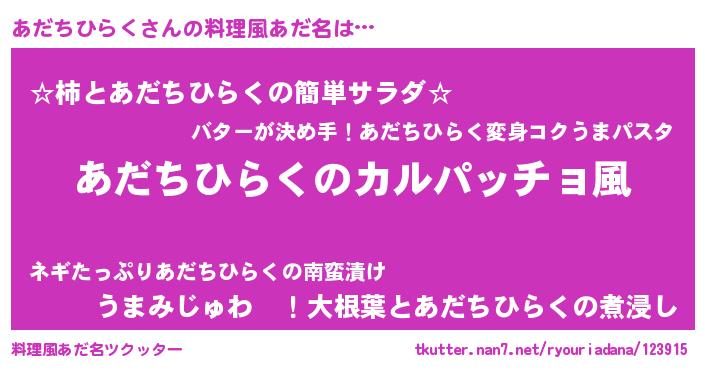 | ヒーロー風カッコイイあだ名 | 『仮面アダダー』『スーパーアダチヒラク』 |