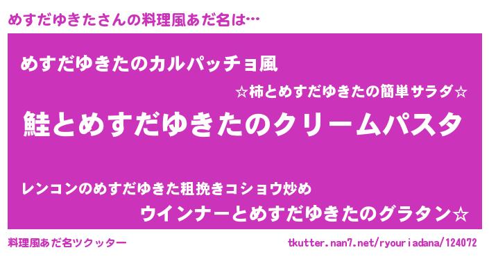 | 男性向けラノベタイトル風あだ名 | 『ノーゲーム・ノーメスダユキタ』 |