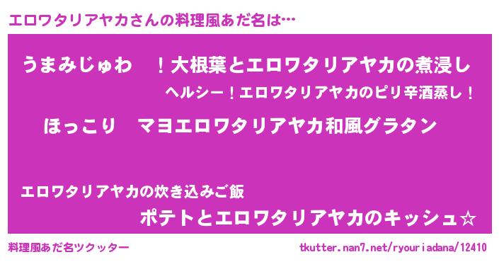 | 欧米人風あだ名 | 『ダレノガレエロワタリアヤカ』 |
