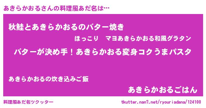 | ヘコむあだ名 | 『あきらかおる(笑)』『なまこ酢』 |
