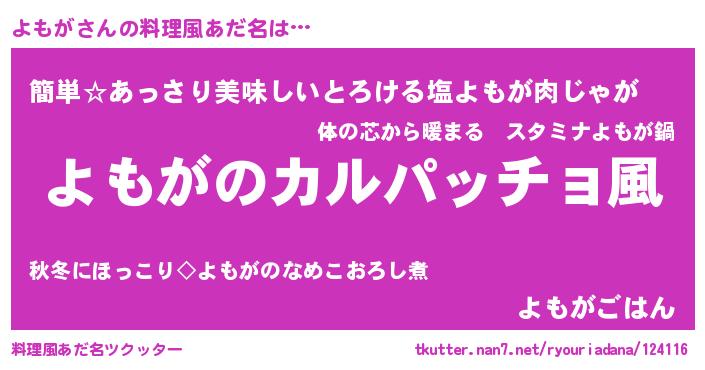 | 男性向けラノベタイトル風あだ名 | 『魔弾の王とよもが』『ヨモガスレイヤー』 |