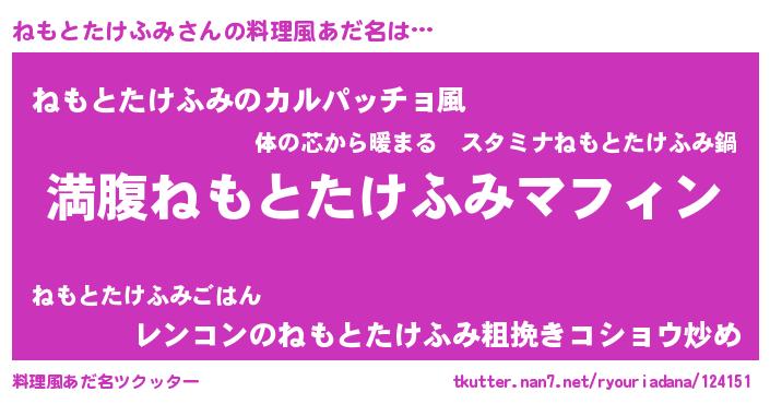 | 意味不明あだ名 | 『永久保存ねもとたけふみ』 |