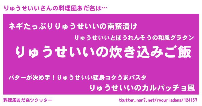| 男性向けラノベタイトル風あだ名 | 『うちのりゅうせいいが世界を掌握している!』 |