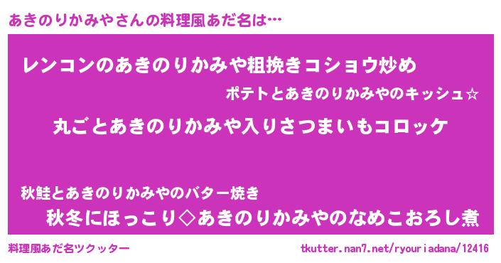| 男性向けラノベタイトル風あだ名 | 『この素晴らしい世界にあきのりかみやを!』 |