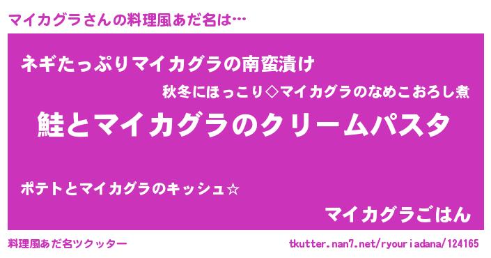 | ヘコむあだ名 | 『マイにー』『マイお』『なまこ酢』 |