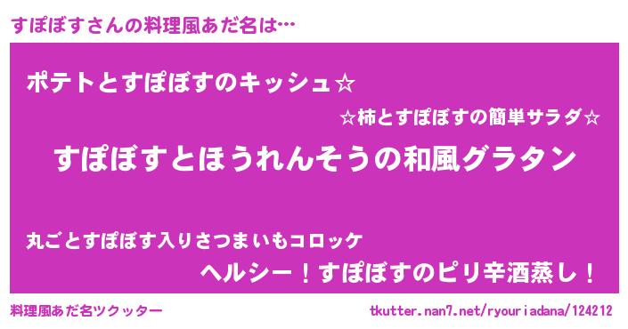 | 意味不明あだ名 | 『なめこ科すぽぼす属』『自称すぽぼす』 |