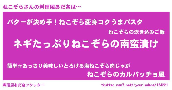 | ヘコむあだ名 | 『ねこもー』『ねこぞら(笑)』 |