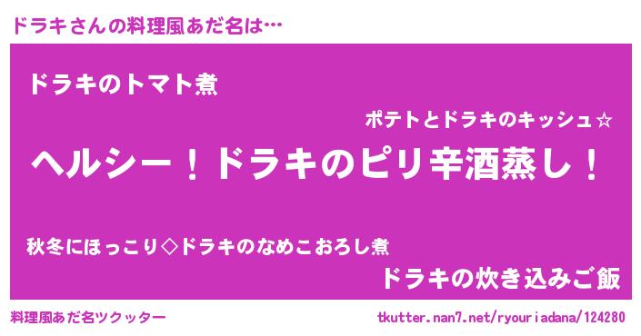 | 男性向けラノベタイトル風あだ名 | 『Re:ドラキから始める異世界生活』 |