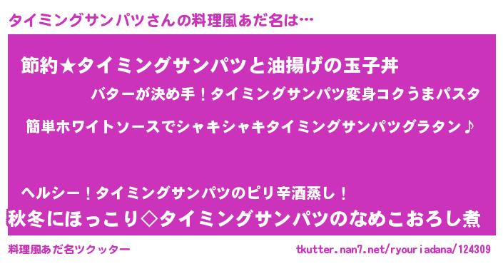 | 胡散臭い通販商品みたいなあだ名 | 『全米が絶賛したサプリメント…その名も「タイミングサンパツ」』 |