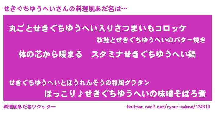 | 男性向けラノベタイトル風あだ名 | 『やはりせきぐちゆうへいの青春ラブコメはまちがっている 』 |