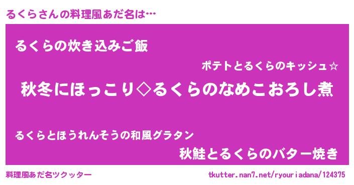 | ヘコむあだ名 | 『るくら(震え声)』『るく太郎』 |