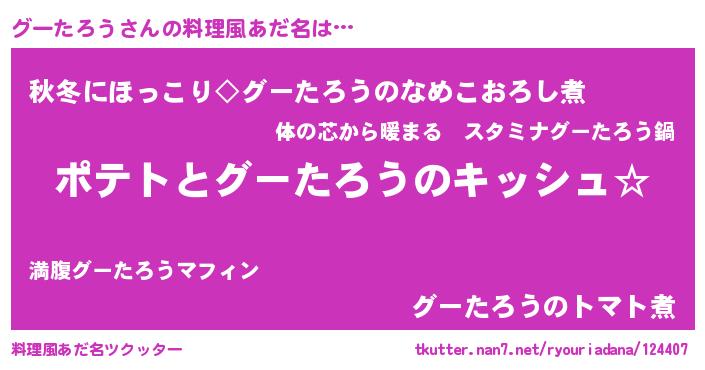 | 意味不明あだ名 | 『とにかく怪しいグーたろう』 |