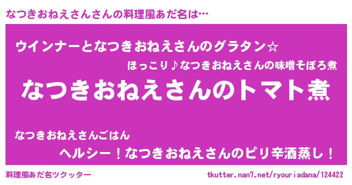 | 胡散臭い通販商品みたいなあだ名 | 『100人中100人が認めた隕石のかけら…その名も「なつきおねえさん」』 |