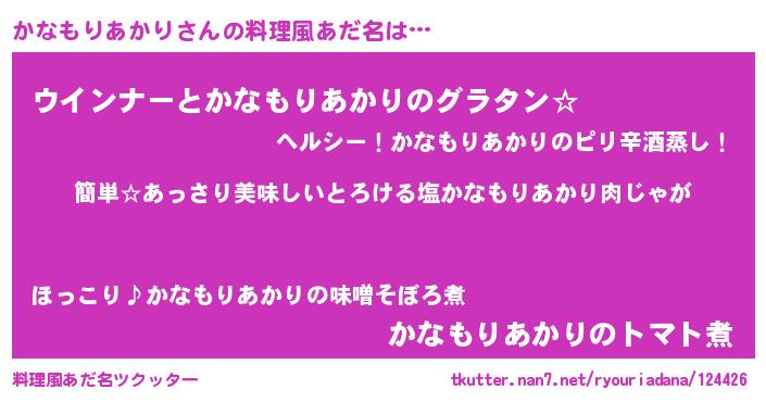 | ヘコむあだ名 | 『かなもりあかり(震え声)』『つくし』 |