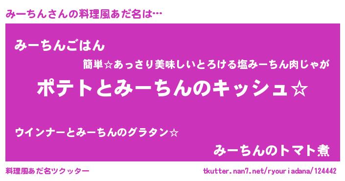 | ヘコむあだ名 | 『みーぷりん』『みーちん(小並感)』 |