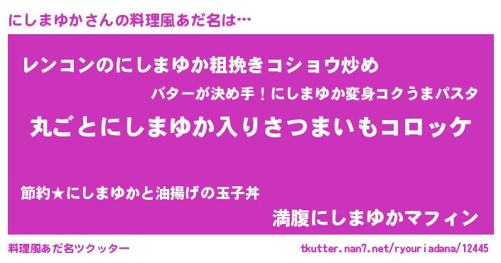 | ヘコむあだ名 | 『にしまゆか(笑)』『にしにゅー』 |