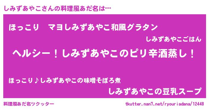 | 男性向けラノベタイトル風あだ名 | 『Re:しみずあやこから始める異世界生活』 |