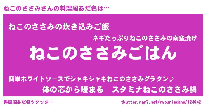 | 欧米人風あだ名 | 『トリンドルねこのささみ』 |