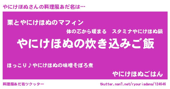 | ヘコむあだ名 | 『なまこ酢』『やにっふぃ~』 |