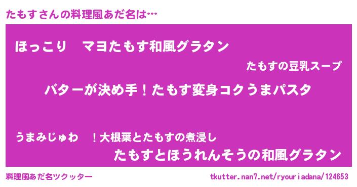| ヘコむあだ名 | 『たもお』『つくし』『たもっふぃ~』 |