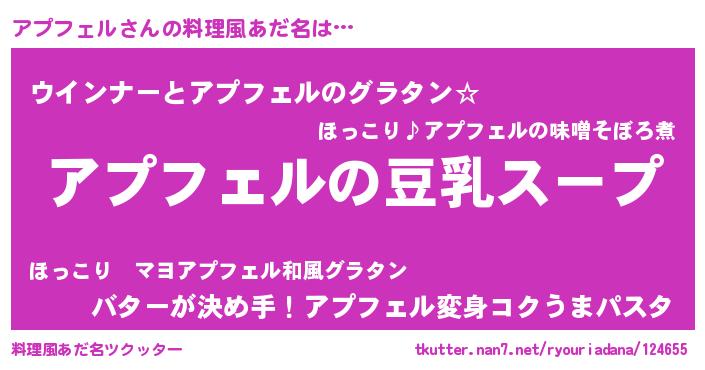 | 意味不明あだ名 | 『とにかく怪しいアプフェル』 |