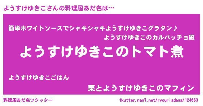 | ポケモン風あだ名 | 『ヨックウザ』『ヒヨウスケユキコ』 |