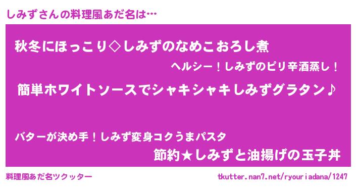 | 女子向けラノベタイトル風あだ名 | 『しみず様がみてる』『しみず恋絵巻』 |