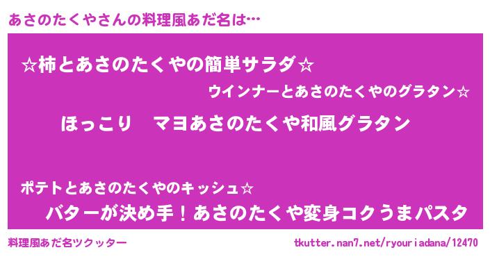 | ヒーロー風カッコイイあだ名 | 『仮面アサダー』『愛の使者あさのたくや』 |