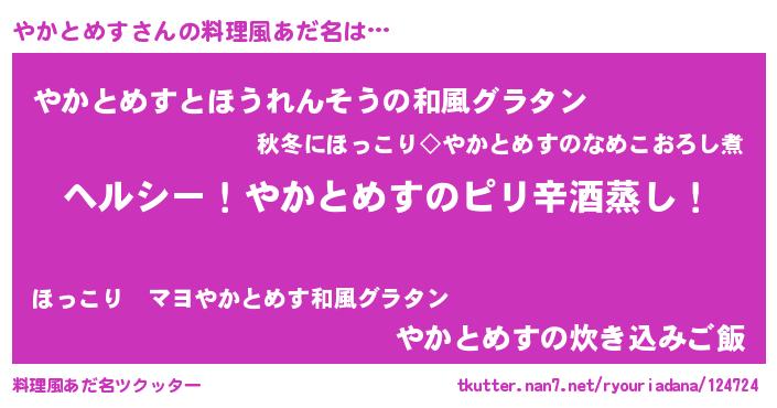 | 意味不明あだ名 | 『自称やかとめす』『永久保存やかとめす』 |