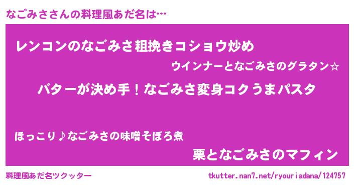 | ヘコむあだ名 | 『豆乳』『なごふぇ~』『なごっぺ』 |