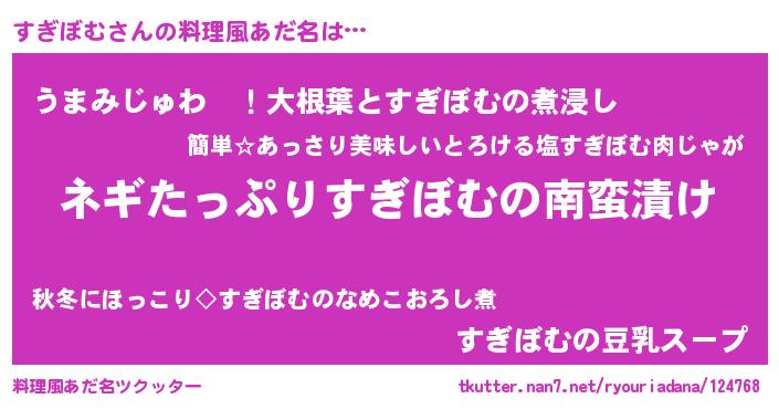 | ヘコむあだ名 | 『すぎもー』『つくし』『すぎぷりん』 |