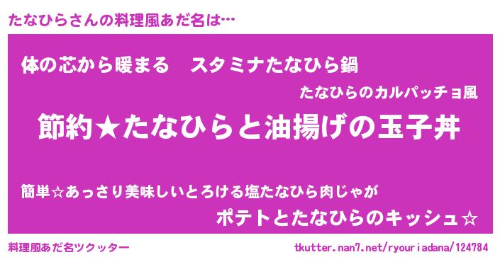 | ファンタジー風あだ名 | 『タナフェル』『エターナルタナヒラー』 |
