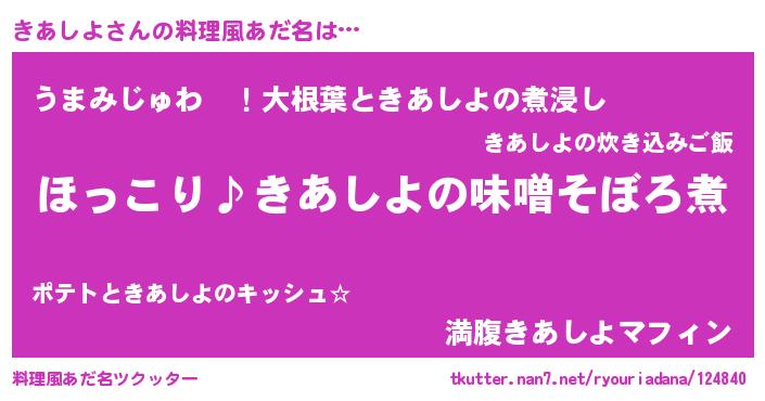 | 意味不明あだ名 | 『ペロリンきあしよ』『永久保存きあしよ』 |