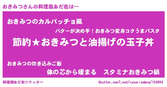 | 胡散臭い通販商品みたいなあだ名 | 『モテモテ間違いなし霊験あらたかなお札…その名も「おきみつ」』 |