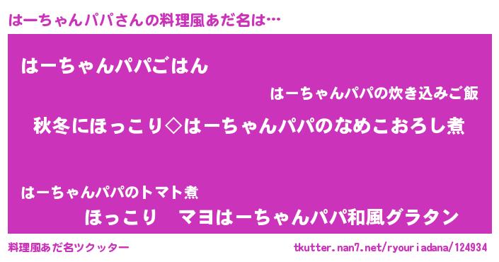 | 意味不明あだ名 | 『ニラ科はーちゃんパパ属』 |