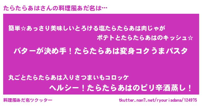 | ヘコむあだ名 | 『たらたらあは(爆)』『たらを』 |