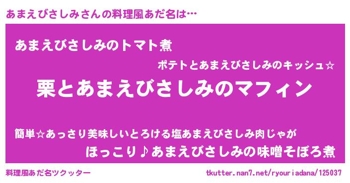 | 男性向けラノベタイトル風あだ名 | 『はたらくあまえびさしみさま!』 |