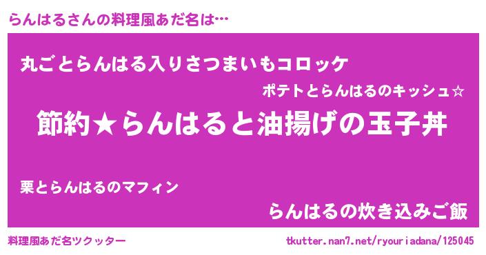 | 意味不明あだ名 | 『ペロリンらんはる』『自称らんはる』 |