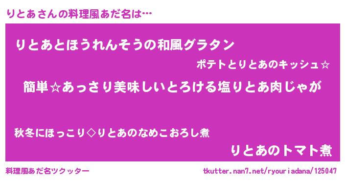 | ヘコむあだ名 | 『りとあ(震え声)』『りとぷりん』 |