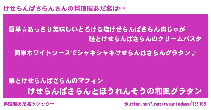| 胡散臭い通販商品みたいなあだ名 | 『全米が絶賛したサプリメント…その名も「けせらんぱさらん」』 |
