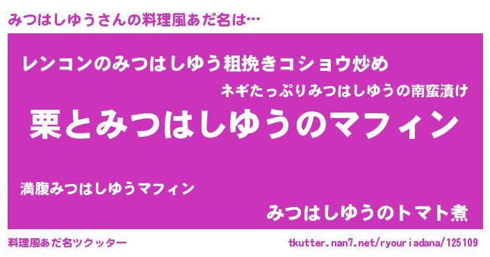 | ヘコむあだ名 | 『みつにゅー』『みつはしゆう(苦笑)』 |