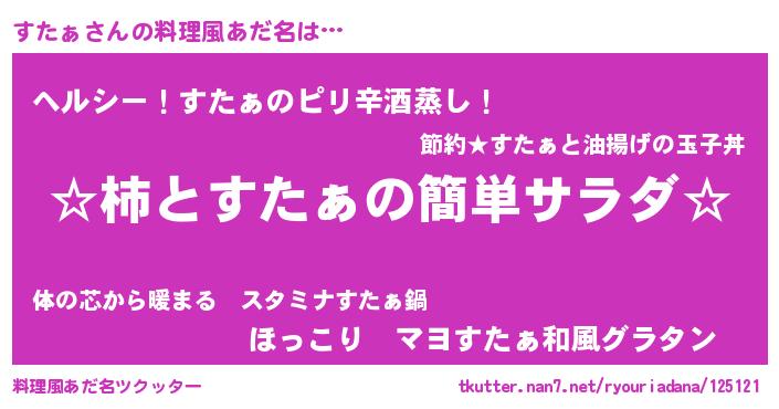 | ヘコむあだ名 | 『すたにゅー』『酢こんぶ』『すたお』 |