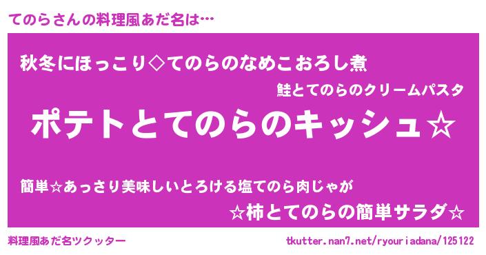 | ヘコむあだ名 | 『てのっちょ』『てのら(遠い目)』 |