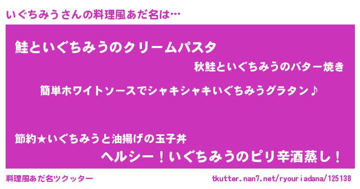 | 男性向けラノベタイトル風あだ名 | 『いぐちみうの嫁は女の子じゃないと思った?』 |